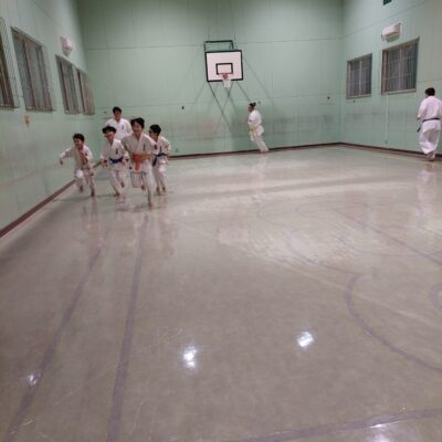 いつも通り体育館を10周程走ります。スキップや横になり足を前交差後ろ交差しながら走ります。