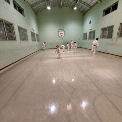 次に補強稽古です。拳立て伏せ、フッキンスクワットを少年部から一般まで拳立て伏せ、フッキン、スクワットと続けて行い、最後は、組み手を行い終了です。お疲れ様でした!