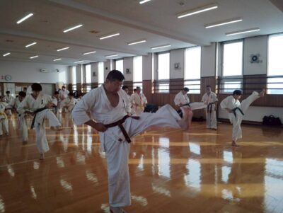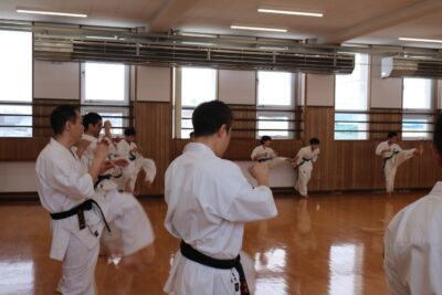稽古の最後、正拳中段突き 前蹴りで終了です。