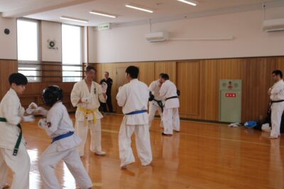 稽古2日目、中村先輩が参加です。柔軟体操、基本稽古と続きます。