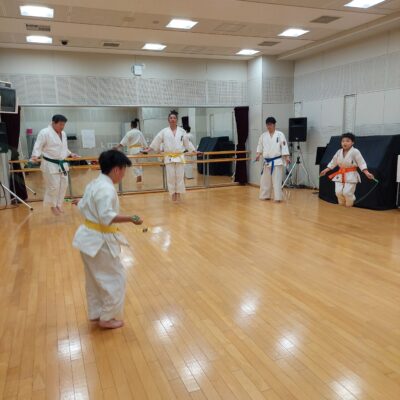 エコセンターでの稽古です。初めに、縄跳びを跳びます。