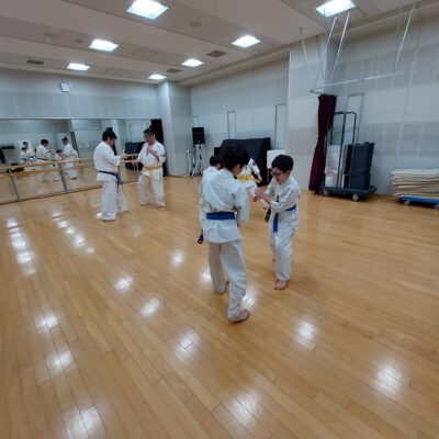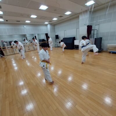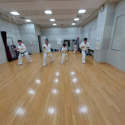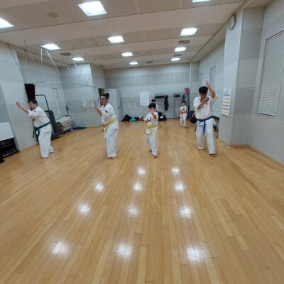 騎馬立ちの移動稽古、5本蹴りも行いました!最後は、組み手を行い終了です。皆さん組み手も強くなってきています!