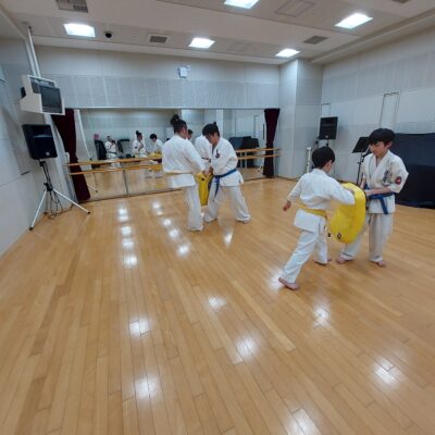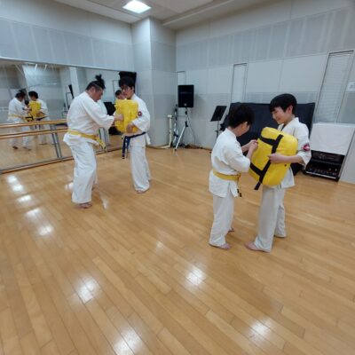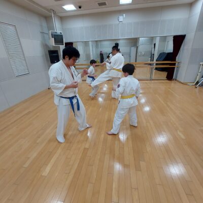 下段回し、前蹴り~の膝蹴り、トリッキーな蹴り方なども行いました!練習して使える様に頑張りましょう。