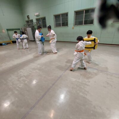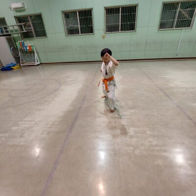 オレンジ帯、太極その3、平安その1を繰り返し行います。かなた君良い動きです。