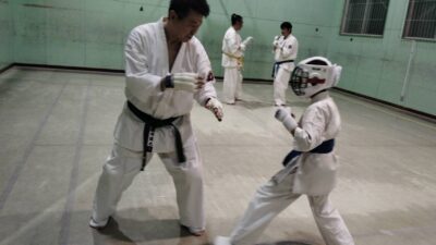 次に前蹴りに対しての受け返し等を高橋師範にアドバイスいただき繰り返し行います。