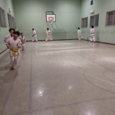 正拳中段突き。基本稽古を佐藤さんと藤田さんにお願いしました。