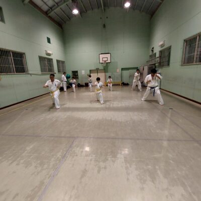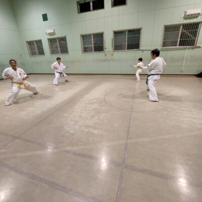 後屈立、手刀回し受け。皆、上体が高いので低くを意識します。