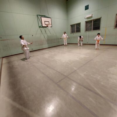 続いてボディ打ち。打たれ強さの稽古です!逃げるのでは、なく耐える稽古です。