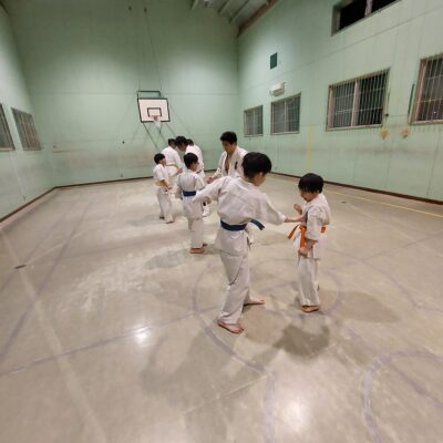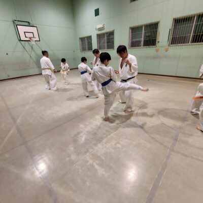 蹴りの蹴り返し。ゆうき君の下段回し蹴り。最後は、拳立て伏せ、指立て伏せ、腕立て伏せを多い回数では、有りませんが、交互に行い終了です。
