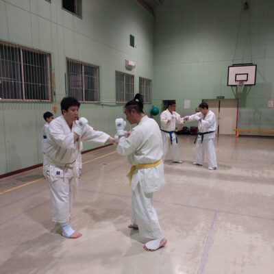 休憩を挟み、組み手立ちの移動稽古、パンチに対しての受け返しや下段回し蹴りに対しての受け返し、ブロック等を繰り返し行いました!