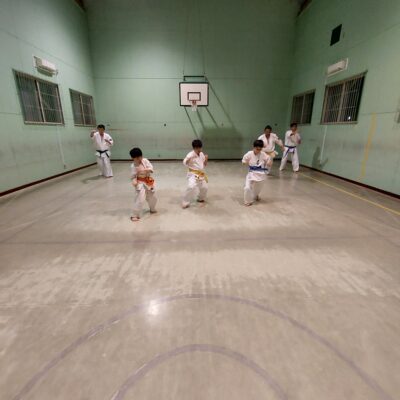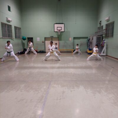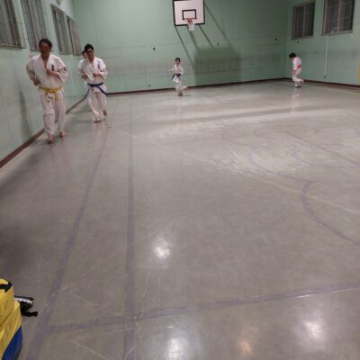 続いて組み手立ちの移動稽古です。踏み足から突きを繰り返し行います。