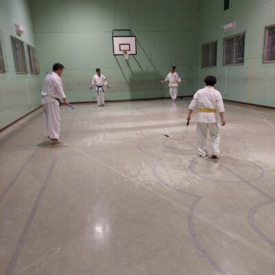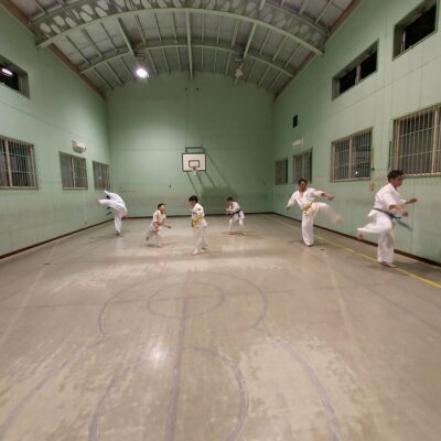 樹体操を行い、基本稽古の裏拳下突き。