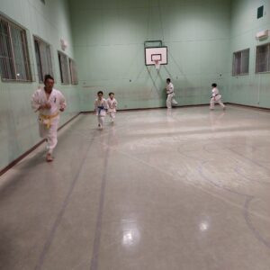 最初に体育館を10周程走ります。続いて柔軟体操、基本稽古と続きます、基本稽古の下突き。合掌をおこない、腰が皆高いので下げる様にします。基本稽古の前蹴り。続いて前屈立ちの移動稽古です。順突き逆突き~行います。手刀回し受け、 […]