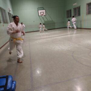 稽古前に体育館を走ります。スキップや横向きになり前交差、後ろ交差と走り方を変えて走ります。今日は、山田先輩が稽古に参加です。柔軟体操を行い、基本稽古の横蹴り。次に縄跳びの稽古です。5分間続けて跳べる様に頑張ります。二重跳 […]